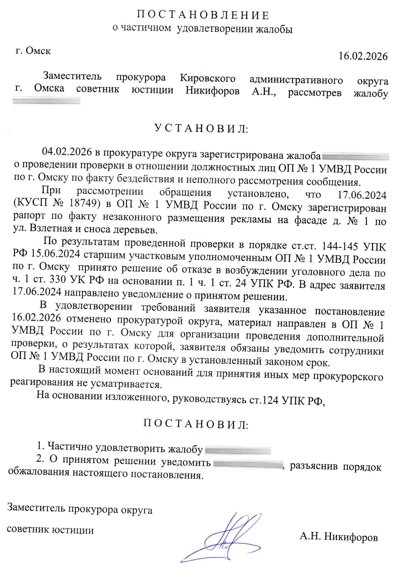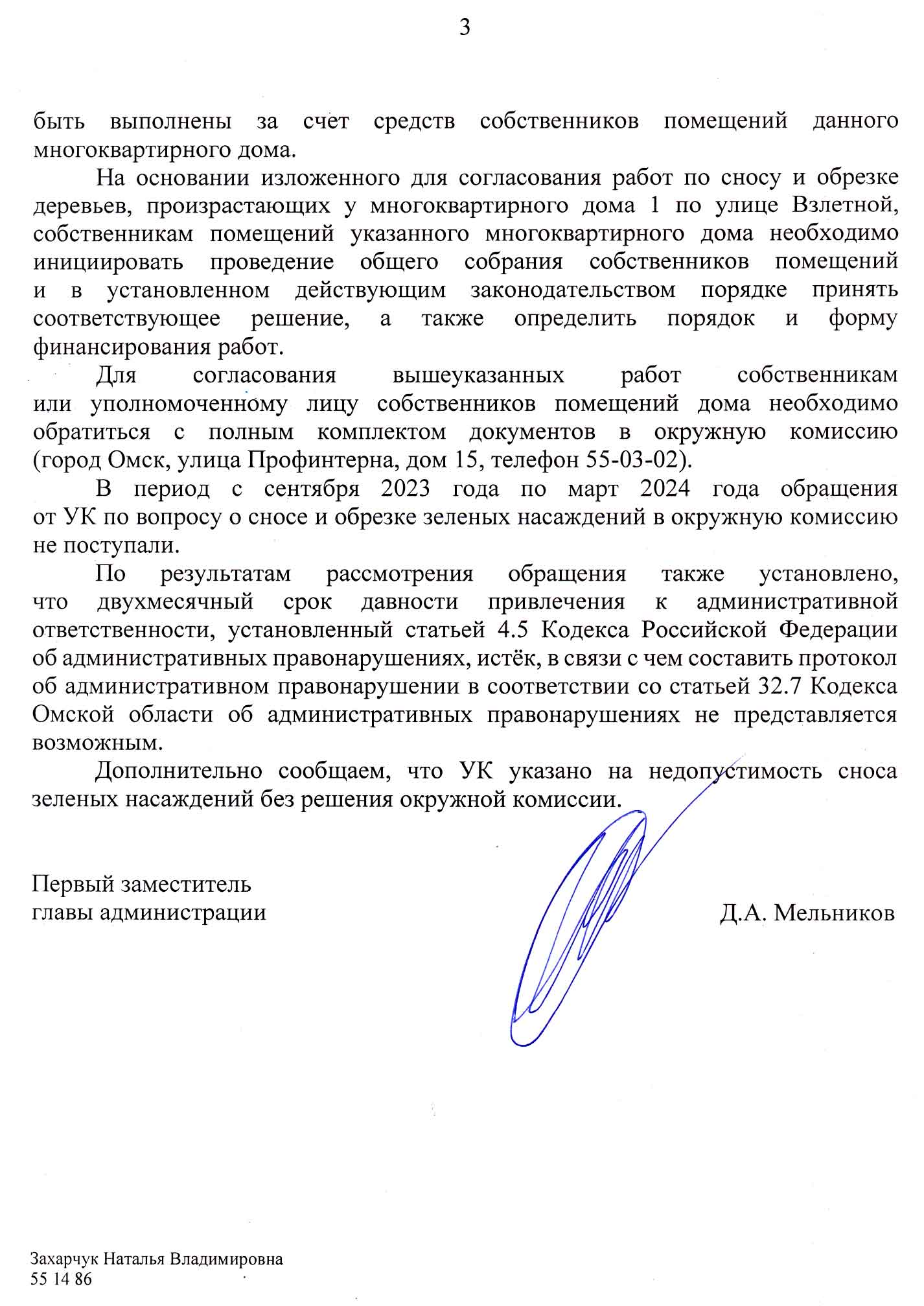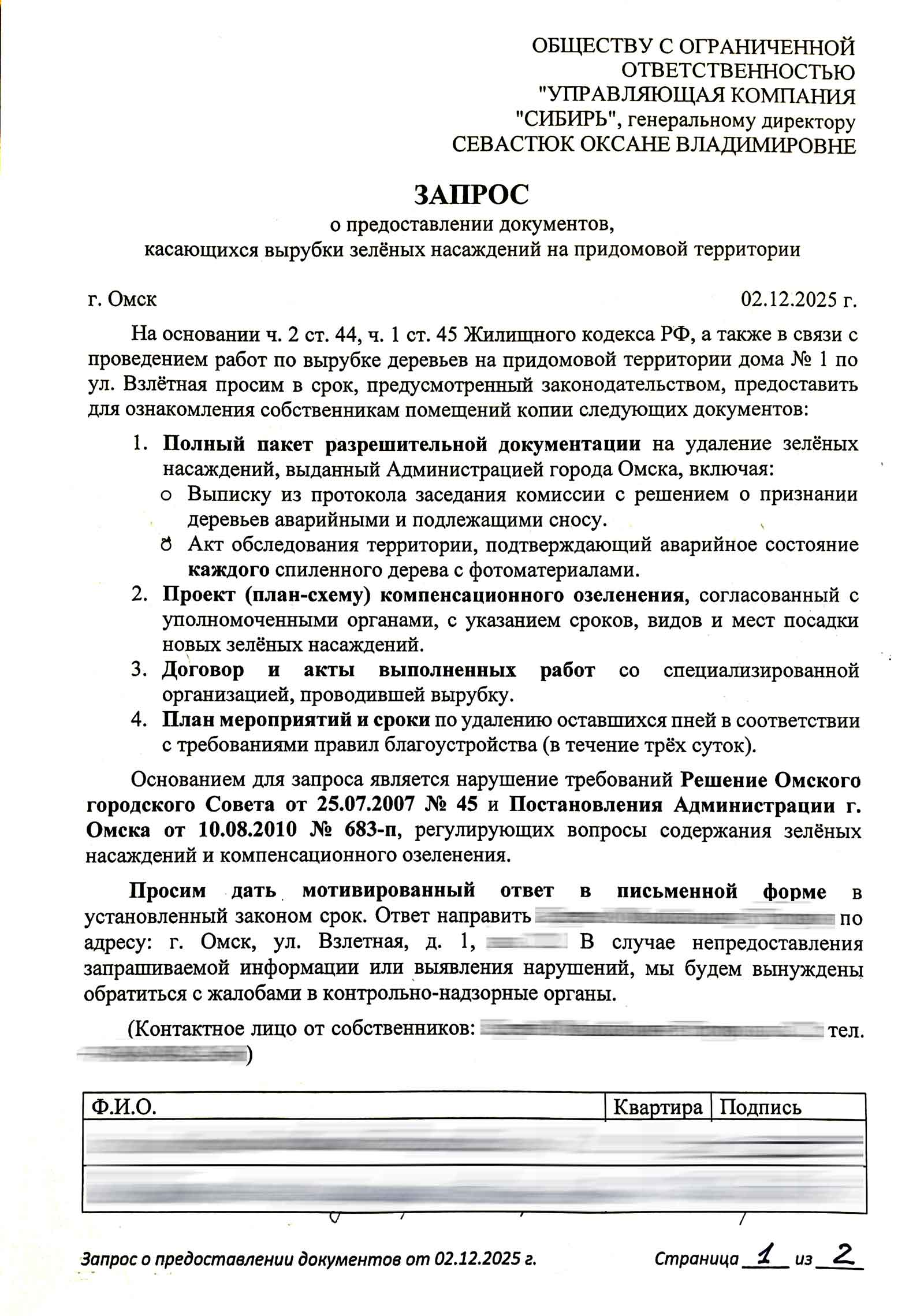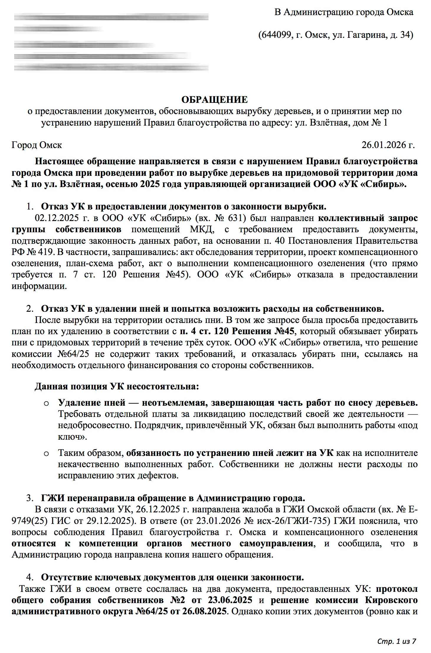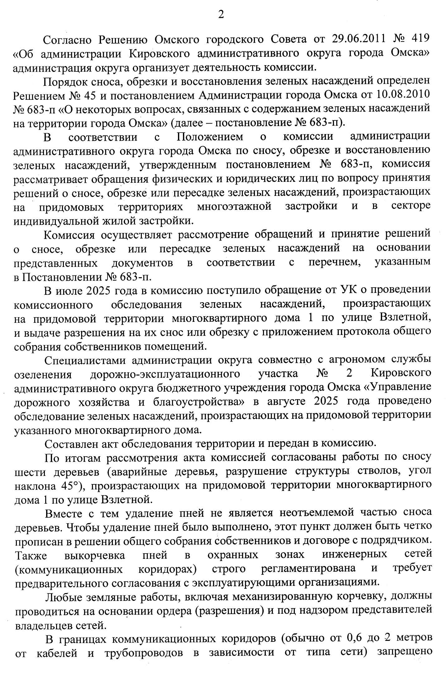 Важно: В ответе Администрации чётко сказано: снос зелёных насаждений без решения окружной комиссии — незаконен. И это зафиксировано документально. Тот факт, что УК «Сибирь» пока что не понесли наказание из-за «сроков», не отменяет самого факта нарушения и обмана.